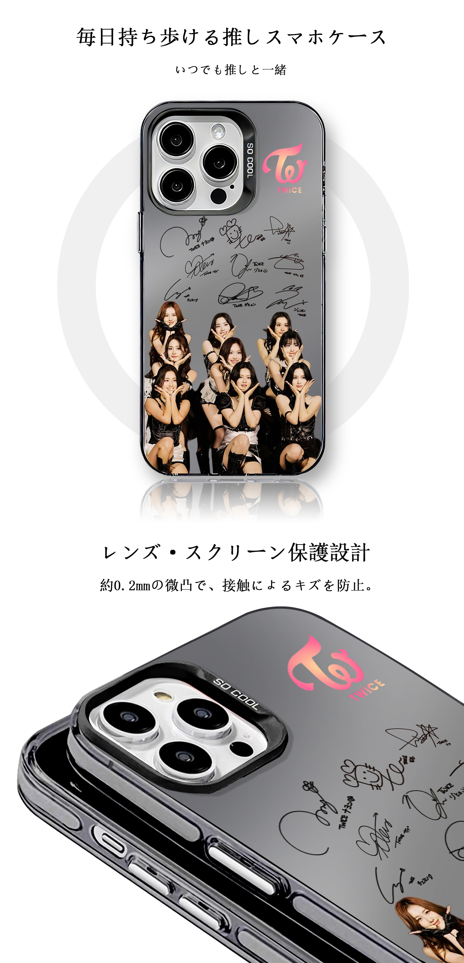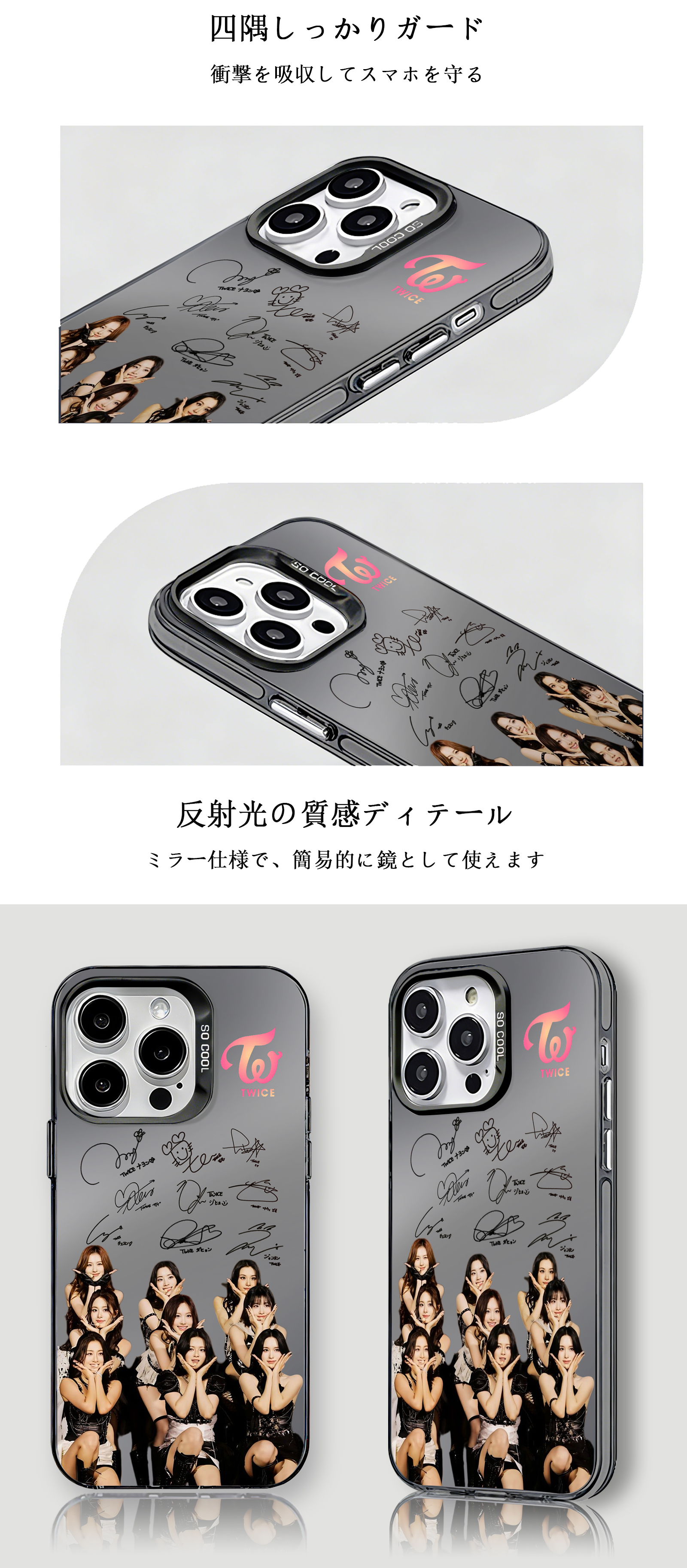 ミラースマホケース-黒【TWICE】